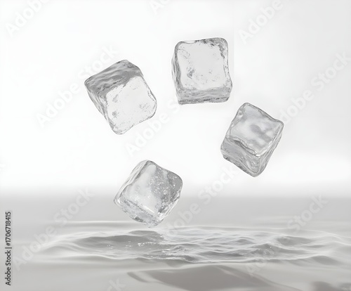 Obraz premium Ice Cubes Falling into Water
