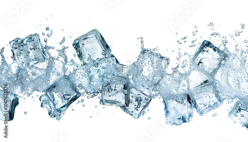 Obraz premium Ice cubes falling into water on white background