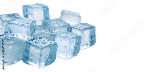 © MDSHANUR, Obraz premium ice cubes in blue on white background
