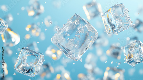 © _Dmitrich_G, Obraz premium Ice Cubes on a Blue Background.