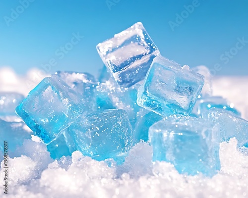Obraz premium Ice Cubes on Snow with Blue Sky.