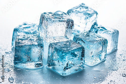 © sharafmaksumov, Obraz premium Ice Cubes On White Background