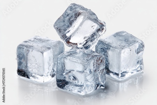 © Anin, Obraz premium Ice cubes stacked, close-up