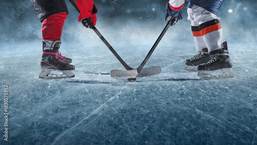 Naklejka premium Ice hockey players on the grand ice arena. A game in the ice hockey hall.