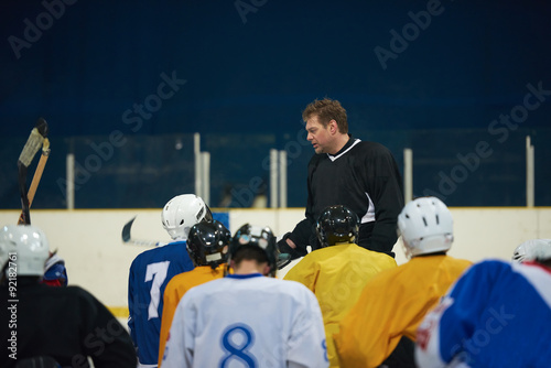 © .shock, Fototapeta premium ice hockey players team meeting with trainer
