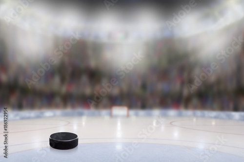 Naklejka premium Ice Hockey Puck in Rink Arena With Copy Space