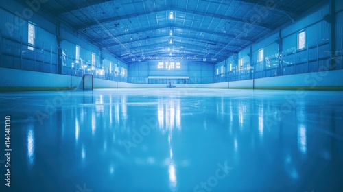 Fototapeta premium Ice Hockey Rink Action Indoor Arena Ground-Level View Smooth Frozen Surface...