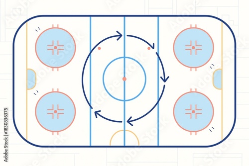 © Pixels Hunter, Fototapeta premium Ice hockey rink diagram with arrows showing skating drill concept on a white background in minimalist line art style. Ai generative. Ai generative