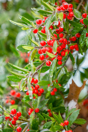 © flares38, Obraz premium Ice Holly Tree with Red Berries