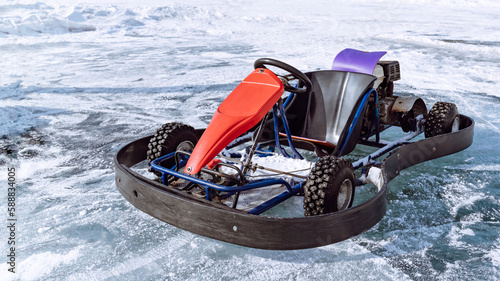 © Sergey, Naklejka premium Ice karting with sports cars on studded tires.