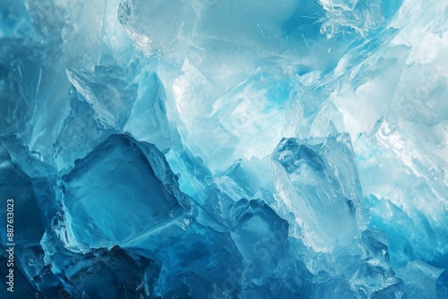 © Tanu, Obraz premium Ice Light Blue Pastel Backgrounds, blue abstract ice texture grunge background, A large ice structure in a frozen environment, Ai generated