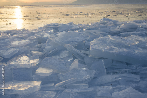 Obraz premium Ice of Baikal lake at sunset