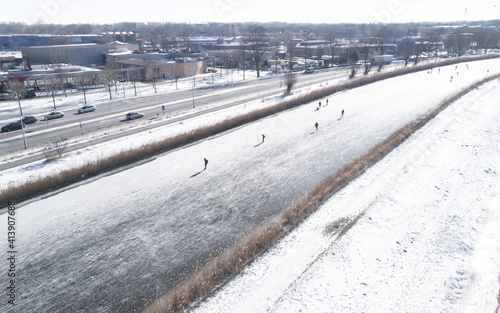 Obraz premium Ice skating along the road (Duizend eilanden rijk - Netherlands)