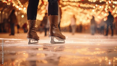 Fototapeta premium ice skating at christmas market with blurred lights in background