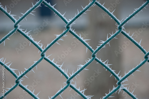 © Tilli, Naklejka premium Ice spikes on the mesh