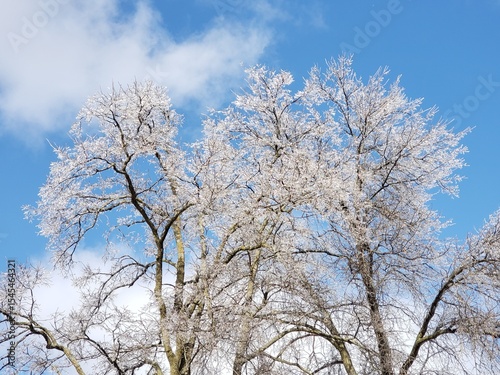 Fototapeta premium Ice storm, ice on trees, frosting rain