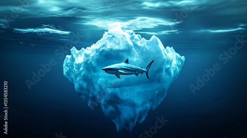 © averroes, Fototapeta premium Iceberg and Shark: Visualizing Hidden Risks and Environmental Challenges