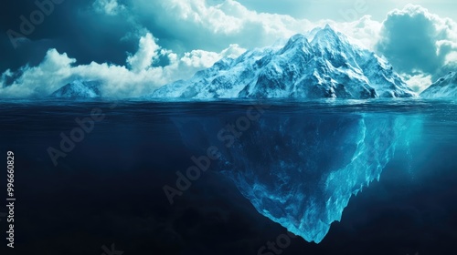 Fototapeta premium Iceberg drifts in the sea revealing an underwater perspective Concept of...