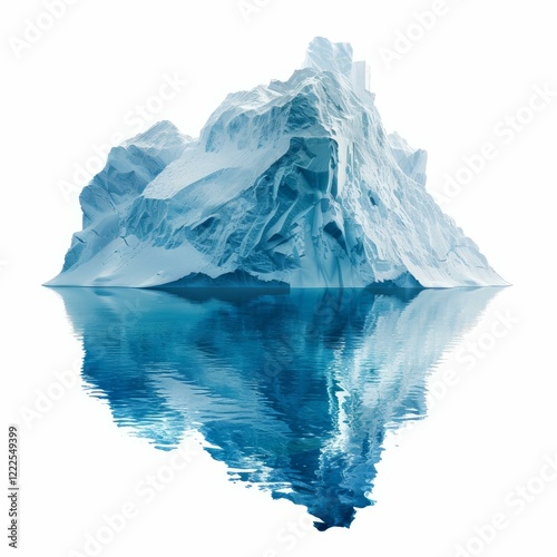 © nsit0108, Obraz premium Iceberg floating with reflection in calm water against white background, global warming and climate change concept