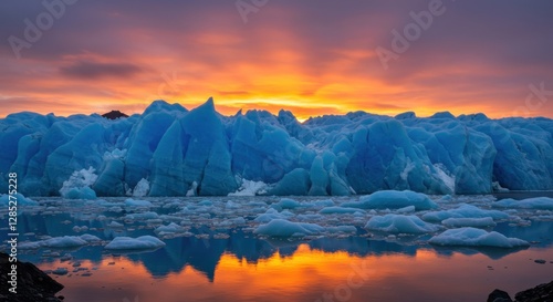 © indiyah, Obraz premium Iceberg Lagoon at Sunset Breathtaking Landscape with Dramatic Sky Reflections