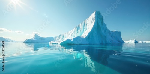 Naklejka premium Iceberg majestically gliding through calm turquoise waters , calm, iceberg,...