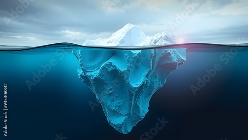 Obraz premium Iceberg seen above and below water.