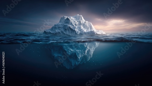 © Hidayat, Fototapeta premium Iceberg submerged in dark ocean (1)