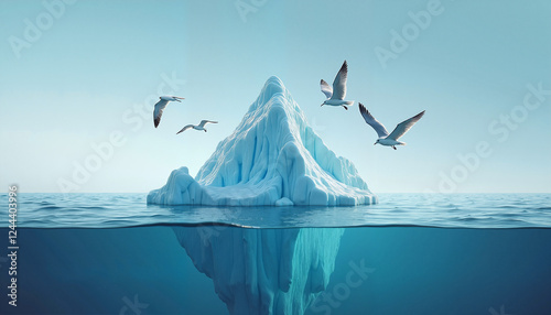 Fototapeta premium Iceberg with flying seagulls in the ocean symbolizing Earth water resources...