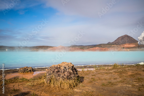 Fototapeta premium iceland, autumn, nature, myvatn, sky, landscape, mountain, volcanic, cloud, panorama, volcano, lake, outdoor, travel, eruption, water, crater, cold, north, scenic, blue, northern, tourism, fall, lava,