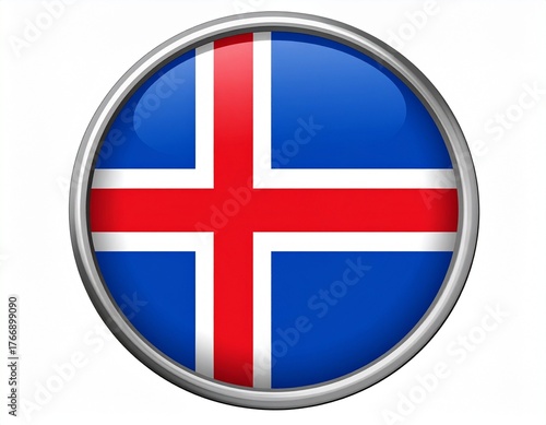 © Usman, Fototapeta premium Iceland Flag Button with Nordic Cross on White Background
