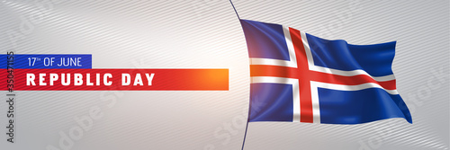 Fototapeta premium Iceland happy republic day greeting card, banner vector illustration