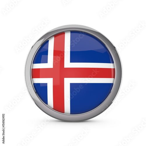 Obraz premium Iceland national flag in a glossy circle shape with chrome frame. 3D Rendering