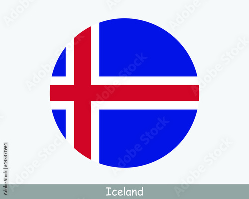 © xileodesigns, Obraz premium Iceland Round Circle Flag. Icelandic Circular Button Banner Icon. EPS Vector