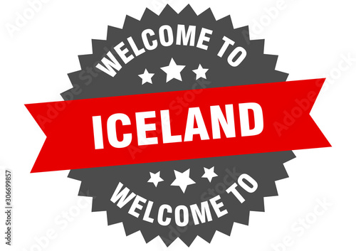Obraz premium Iceland sign. welcome to Iceland red sticker