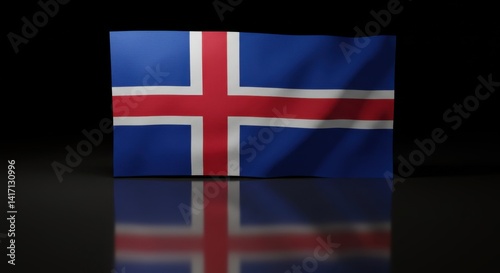 © vector Art, Fototapeta premium Icelandic Flag Waving in Dark Setting: A Stunning 3D Render of National Pride