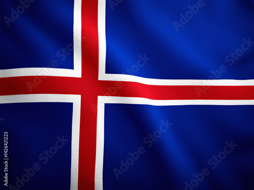 Naklejka premium Icelandic flag waving in the wind, vibrant blue, red, and white colors.