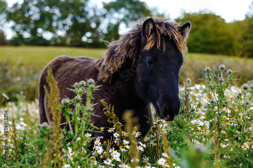 © matilda553, Fototapeta premium Icelandic foals standing in rural field. Denmark. Farm