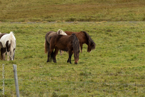 © christy, Fototapeta premium Icelandic horses in the harsh windy landscape .