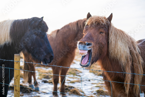 © chendongshan, Fototapeta premium Icelandic horses in the snow