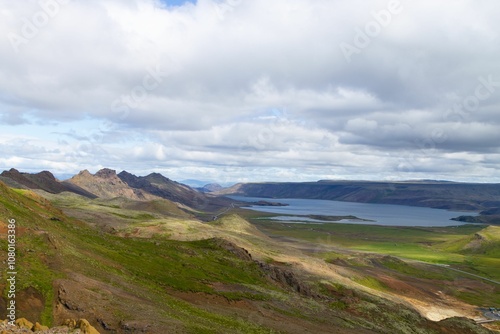 Fototapeta premium Icelandic landscape with mountains and lake