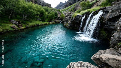 © Alicia, Fototapeta premium Icelandic river cascading into a turquoise pool.