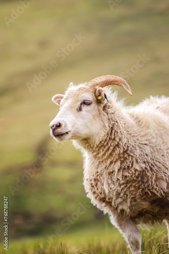Obraz premium Icelandic sheep with long, curling horns and curly fur