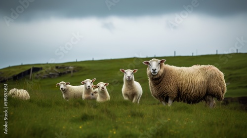 © Emojibb.Family, Fototapeta premium Icelandic Sheep with their playful lambs