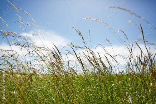 Obraz premium Ich liege in der Sonne auf der Wiese und schaue in den blauen Himmel
