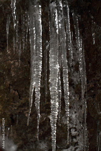 © Nneirda, Obraz premium Icicles on dark background