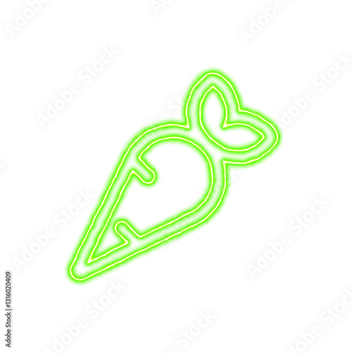 Fototapeta premium Icon carrot from the flow of energy of green color. Shimmering neon
