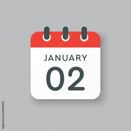 Fototapeta premium Icon day date 2 January, template calendar page
