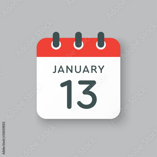 © corben_dallas, Fototapeta premium Icon day date 13 January, template calendar page