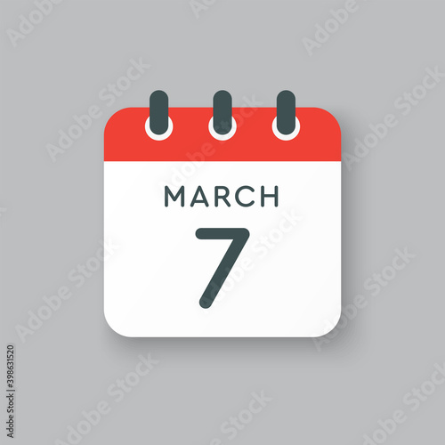 © corben_dallas, Fototapeta premium Icon day date 7 March, template calendar page