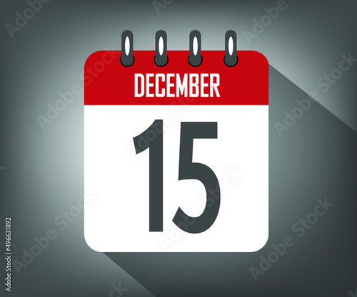 Fototapeta premium Icon day 15 december, red calendar template with gray background